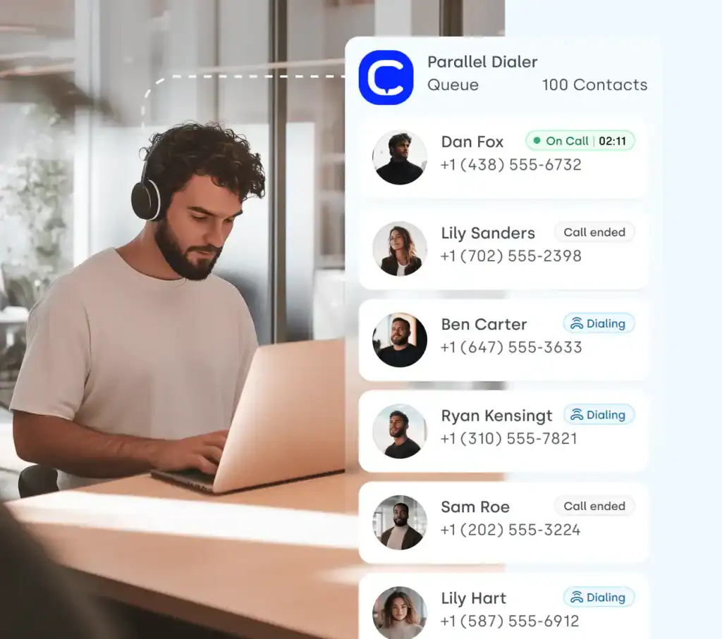 Choose the pace and style that fits your strategy, with support for multiple dialing modes and up to 10 simultaneous calls.